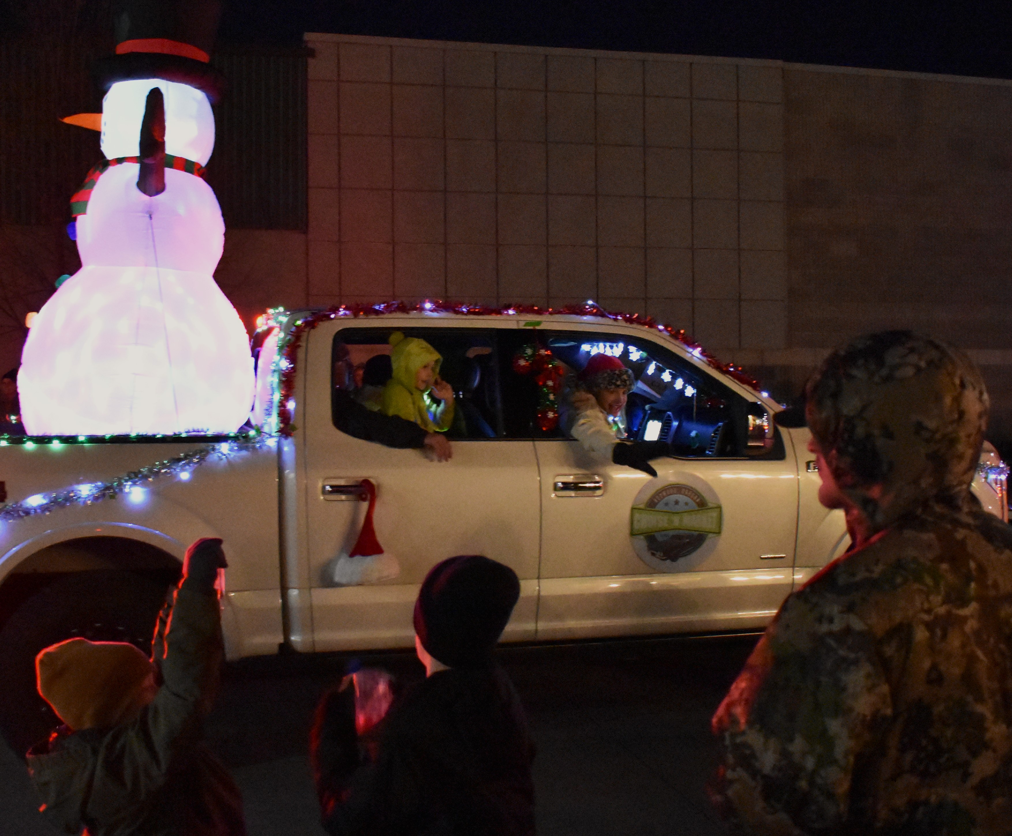 Members on board the Cruise 'N Market & Deli parade truck wave at spectators on Saturday night during the starlight parade in downtown Redmond. The Cruise 'N Market & Deli is locally owned and operated and is one of the many local businesses that help put on the parade.